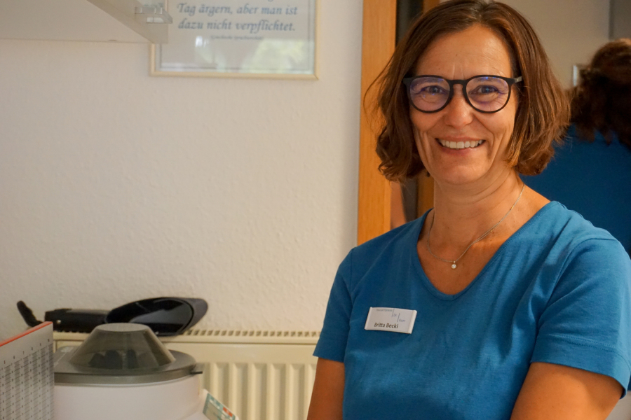 Frau Britta Becki ist seit Juni 2021 als erfahrene MFA im Team unserer Praxis und eine echte Allrounderin.
